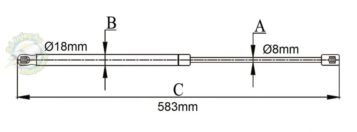 A=Ø8mm | B=Ø18mm | C=583mm